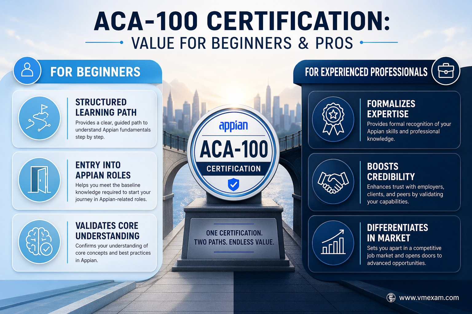 Both beginners new to Appian seeking a structured entry point and experienced professionals looking to formalize their business analysis and platform design skills should consider the ACA-100 certification.